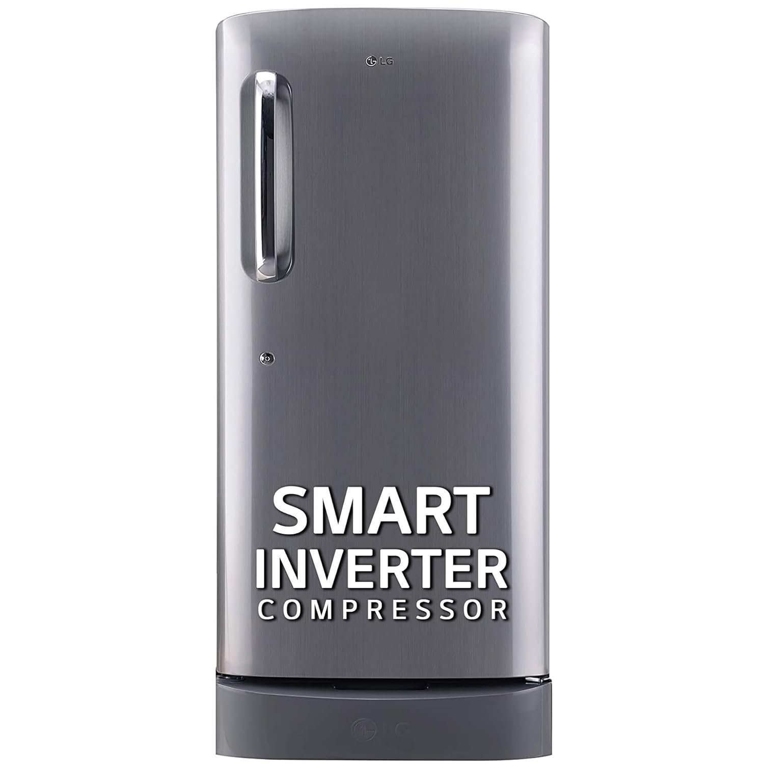 LG 185 L 5 Star Inverter Direct-Cool Single Door Refrigerator (2023 Model, GL-D201APZU, Shiny Steel, Base stand with drawer)